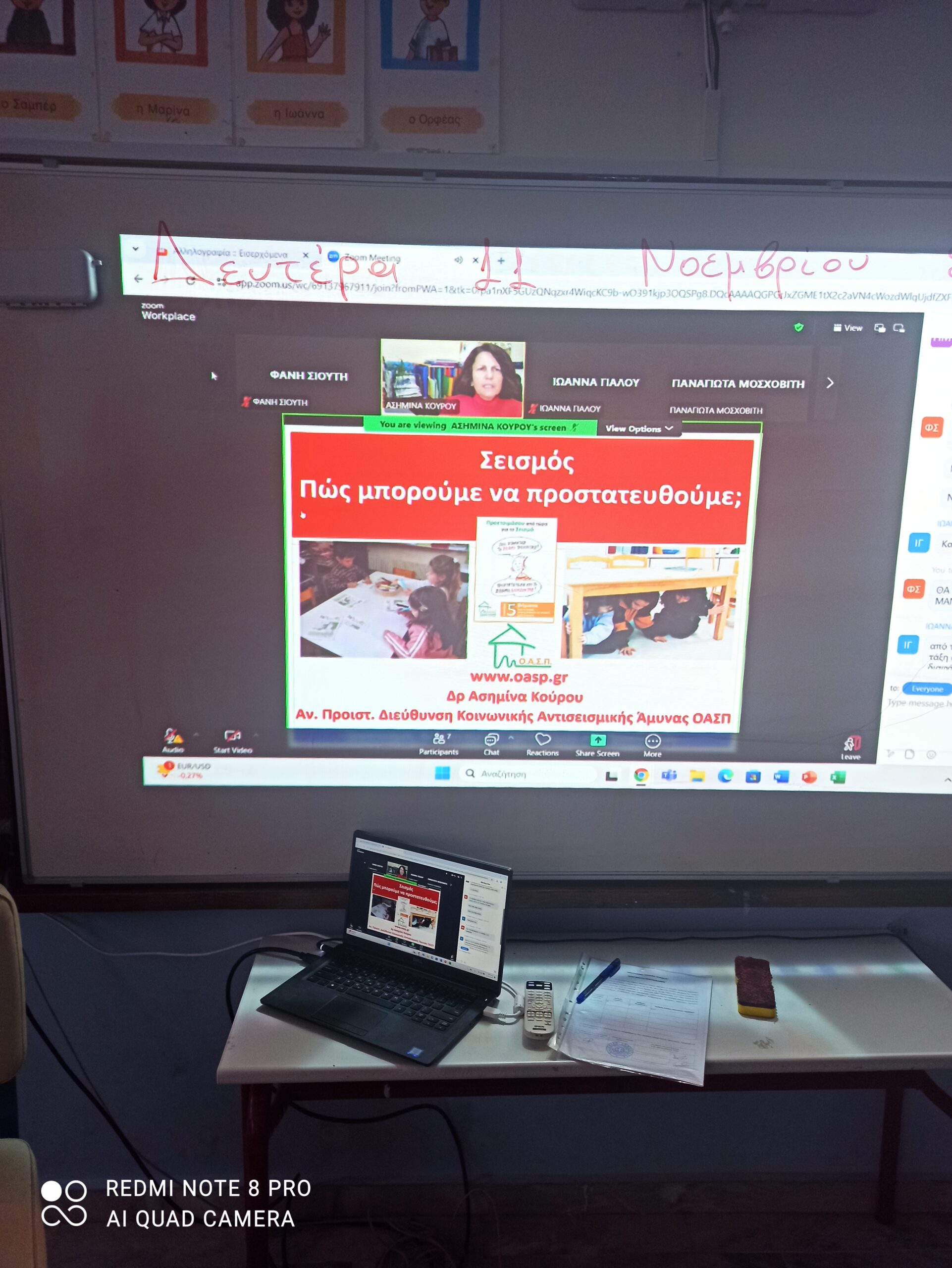 Τη Δευτέρα 11 Νοεμβρίου 2024, οι μαθητές του Δημοτικού Σχολείου Βαρικού συμμετείχαν στην τηλεδιάσκεψη του ΟΑΣΠ (Οργανισμός Αντισεισμικού Σχεδιασμού & Προστασίας) από την κ. Κούρου Ασημίνα με θέμα “ΟΑΣΠ: Ομιλία σε μαθητές για τον σεισμό”.