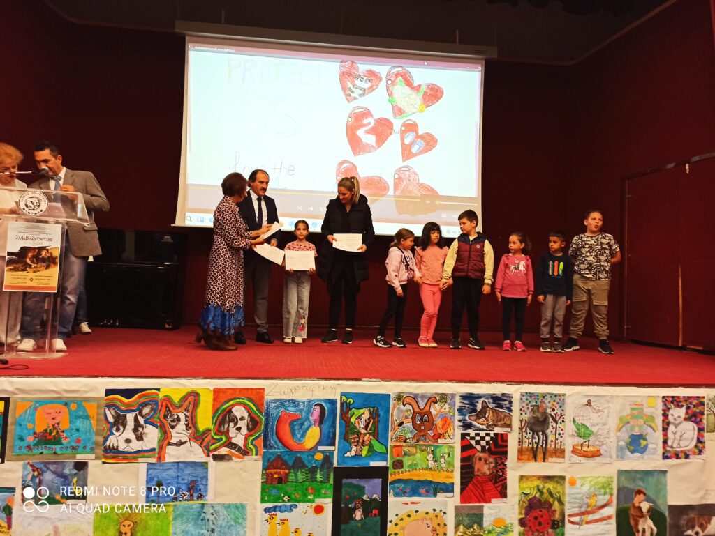 Την Πέμπτη 10/10/2024 το σχολείο μας βραβεύτηκε στον 1ο Πανελλήνιο Διαγωνισμό Φιλοζωίας που διοργάνωσε η Πρωτοβάθμια Εκπαίδευσης Φλώρινας, παίρνοντας το 3ο βραβείο. Η βράβευση πραγματοποιήθηκε το Πνευματικό Κέντρο του Δήμου Αμυνταίου με μεγάλη συμμετοχή από σχολεία άλλων πόλεων καθώς και του εξωτερικού. Το βραβείο παρέλαβε η υπεύθυνη εκπαιδευτικός του Ολοημέρου για το σχολικό έτος 2023-2024, Ιχτιάρη Σταυρούλα, χωρίς να μπορέσει να παρευρεθεί η εκπαιδευτικός της Α΄ και Β΄ τάξη, Παπαχαρίση Ζαχαρούλα.