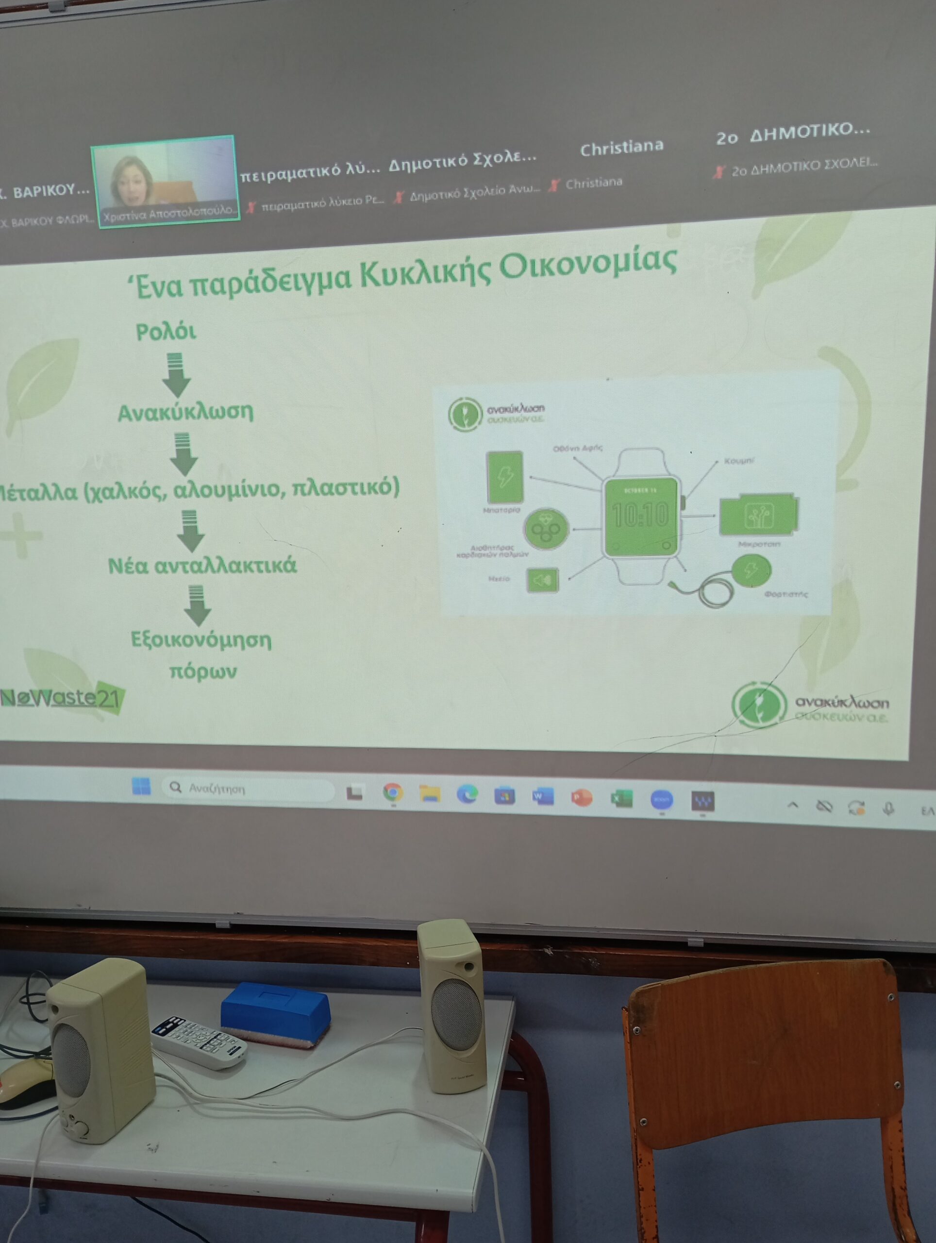 Την Τρίτη 26/11/2025, το σχολείο μας συμμετείχε στην διαδικτυακή δράση στο πλαίσιο της Ευρωπαϊκής Εβδομάδας Μείωσης Αποβλήτων, που έγινε σε συνεργασία με την Ανακύκλωση Συσκευών καθώς η θεματική για φέτος είναι αφιερωμένη στην πρόληψη και μείωση Αποβλήτων Ηλεκτρικού και Ηλεκτρολογικού Εξοπλισμού (ΑΗΗΕ). Η κ. Χριστίνα Αποστολοπούλου του Τμήματος Marketing και Υποστήριξης Έργων με απλό αλλά μεστό λόγο κέρδισε την προσοχή μαθητών και εκπαιδευτικών.