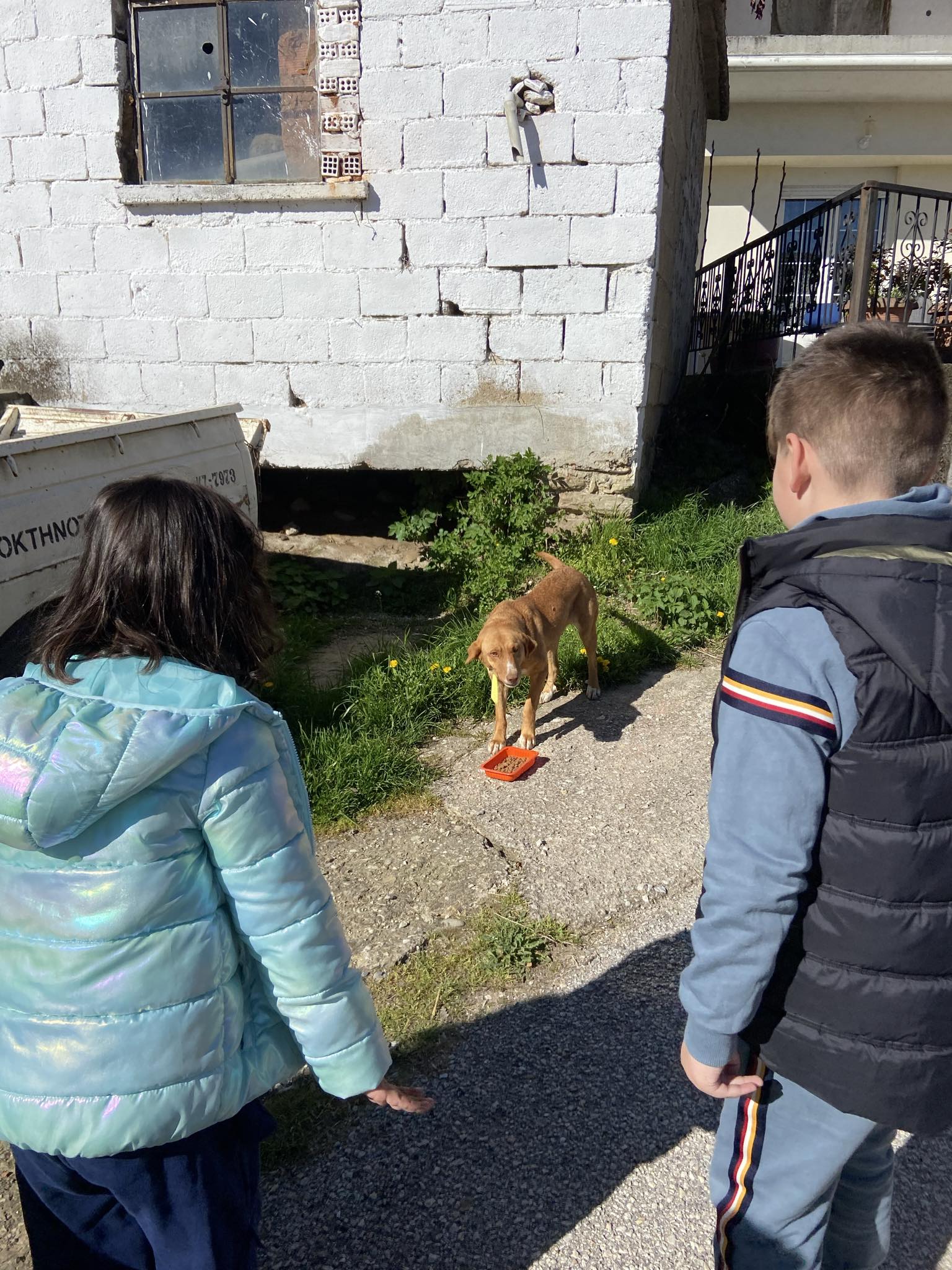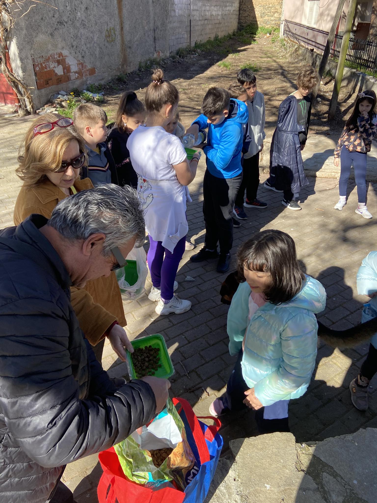 Στη συνέχεια οι μαθητές και οι μαθήτριες πρόσφεραν φαγητό και νερό στα αδέσποτα του χωριού!!!